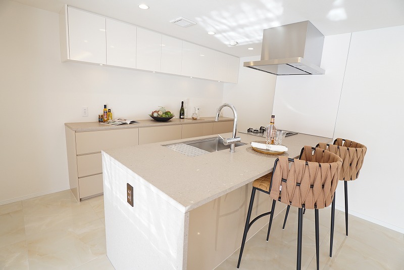 キッチン交換…W2475造作/フィオレストーン(天板)/ガスコンロ/食器洗い乾燥機/浄水器兼用水栓/カップボード