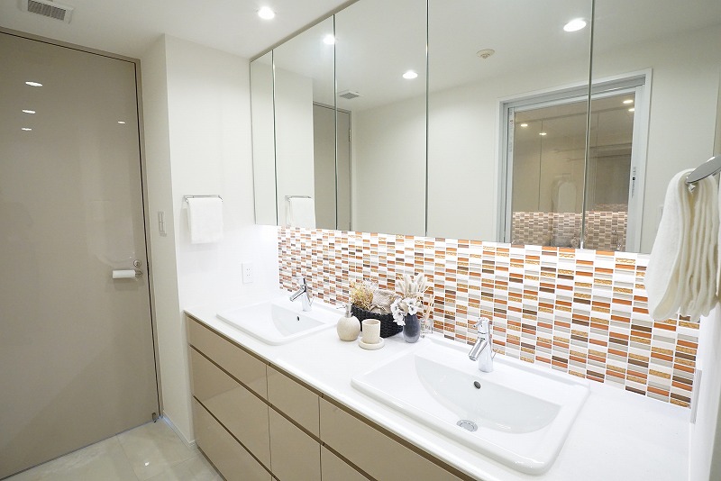 洗面化粧台交換…W1934造作/5面鏡/2ボウル