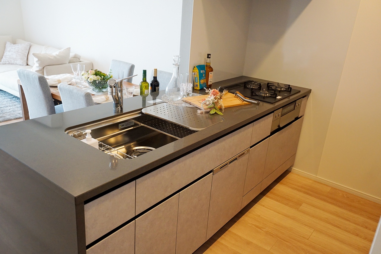 ・システムキッチン…浄水器一体型シャワー水栓・ディスポーザー・食器洗浄乾燥機/カップボード