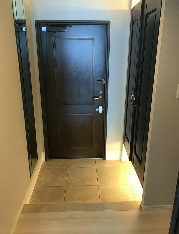 ・木製玄関扉は、厚さ約54mmで、芯材に超耐熱繊維のアルミナシリケートを仕様した防火仕様です。