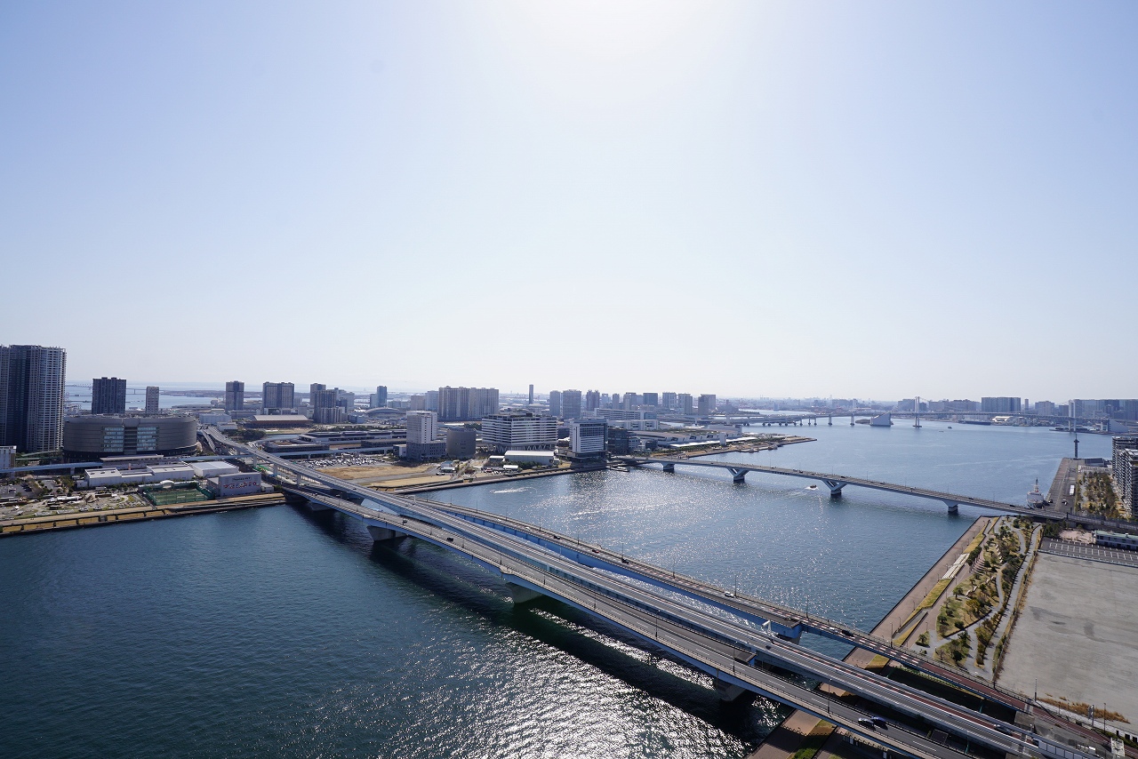 高層の33階から【豊洲方面、レインボーブリッジ、お台場方面】が望める