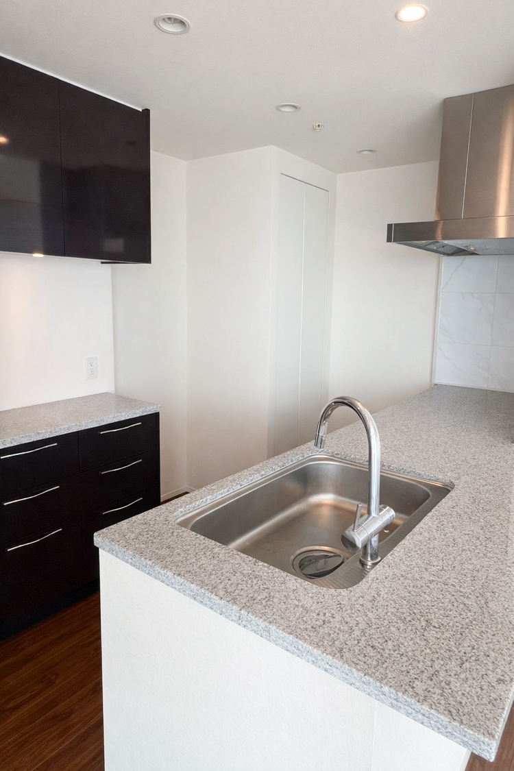 ・対面キッチンや、温かみのある木目調の床とシックなブラックタイルの廊下もおすすめポイントです!